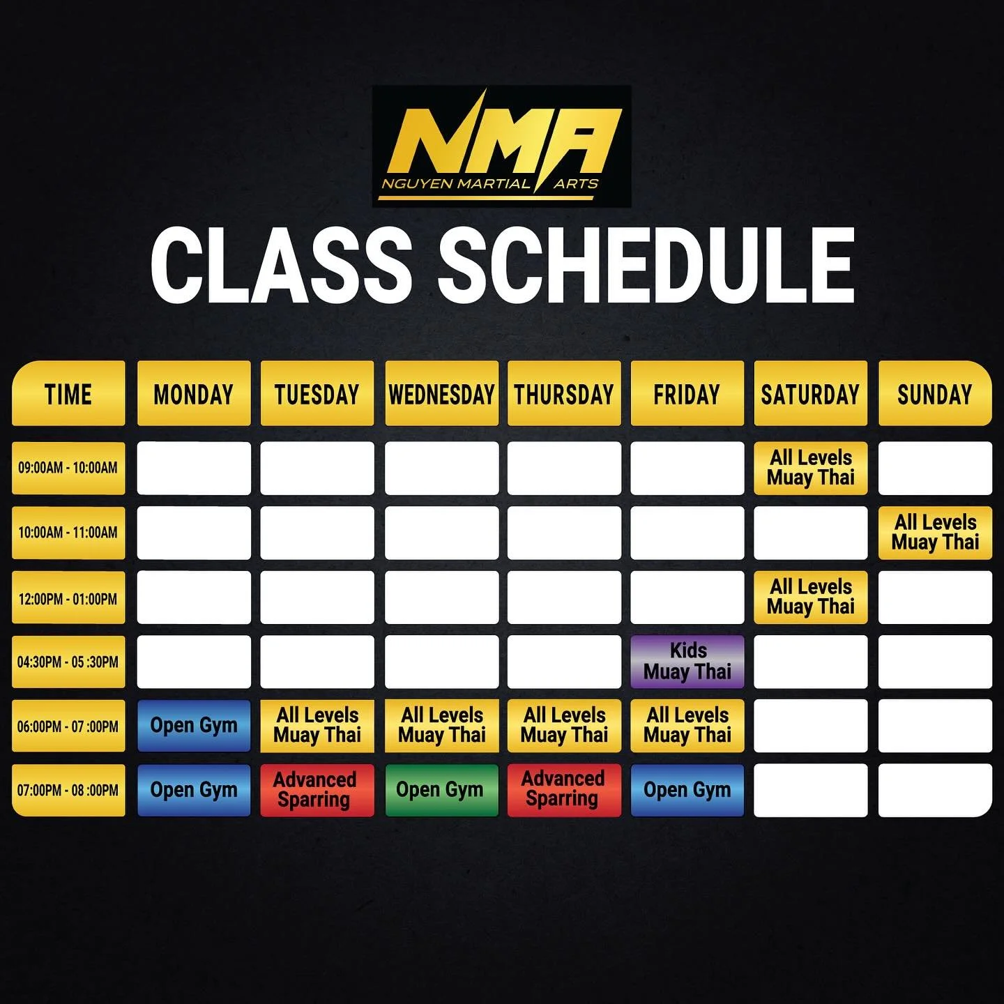 At NMA, we’re more than a gym—we’re a community. Our experienced, fight-tested instructors guide every student with patience, care, and real-world Muay Thai expertise. Whether you’re stepping into the ring for the first time or sharpening your competitive edge, you’ll get personalized attention in a supportive environment.